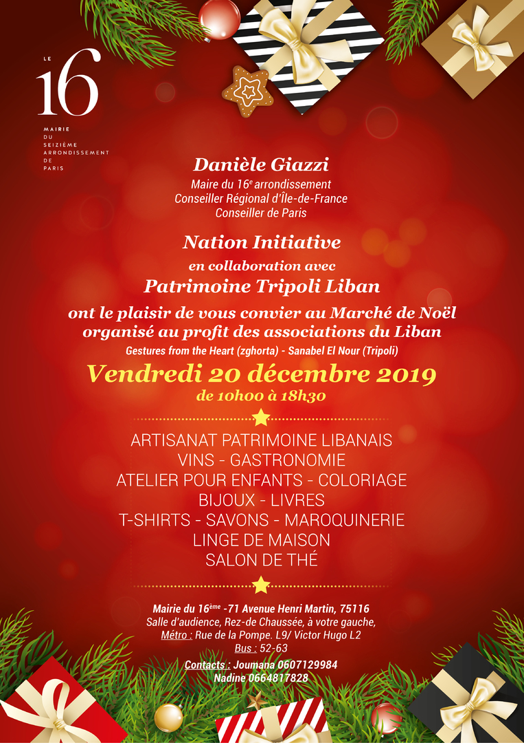 La 2ème Conférence de Machrou'Watan qui s'est déroulée à la Mairie de Paris le 20 octobre 2016 en collaboration avec Randa Sadaka et Maria Choueiry venues du Liban à cette occasion, en présence de SEM Khalil Karam, notre Ambassadeur permanent du Liban à l'Unesco, Je tiens à remercier toutes les personnes qui se sont jointes à moi pour soutenir notre projet de jumelage. Tout d'abord un grand merci à la Mairie de Paris , à SEM Khalil Karam, Ambassadeur permanent auprès de l'UNESCO, Président du groupe francophone, Zeina Saleh Kayali, attachée Culturelle à la délégation du Liban auprès de l'UNESCO, Mme Marie Attalah Conseillère de Paris, Mme Samia Badat Karam adjointe au Maire de la Mairie du 16 ème, les élus , les Présidents d'associations, Paul Abi Ghanem pour leur dévouement, leur sincérité et leur soutien au projet de jumelage, indispensables à Nation Initiative. Je tiens à remercier la banque Audi pour son appui iIndéfectible et le Restaurant ALDAR pour le cocktail.